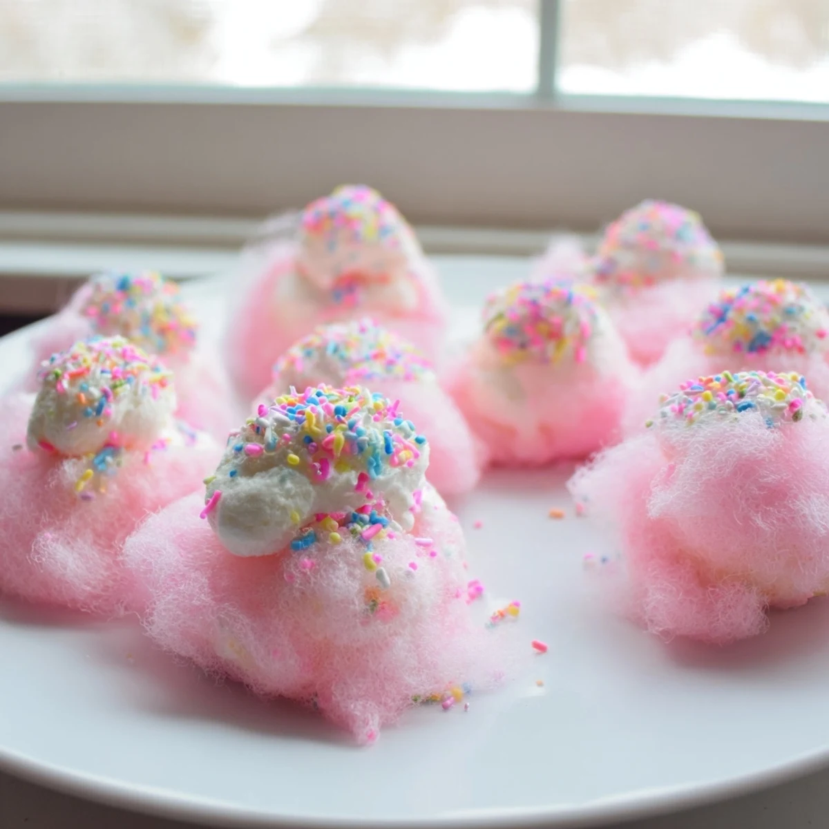 - If you're using sprinkles or edible glitter, apply them immediately while the cotton candy is still slightly tacky, then serve right away or refrigerate briefly before your guests arrive.