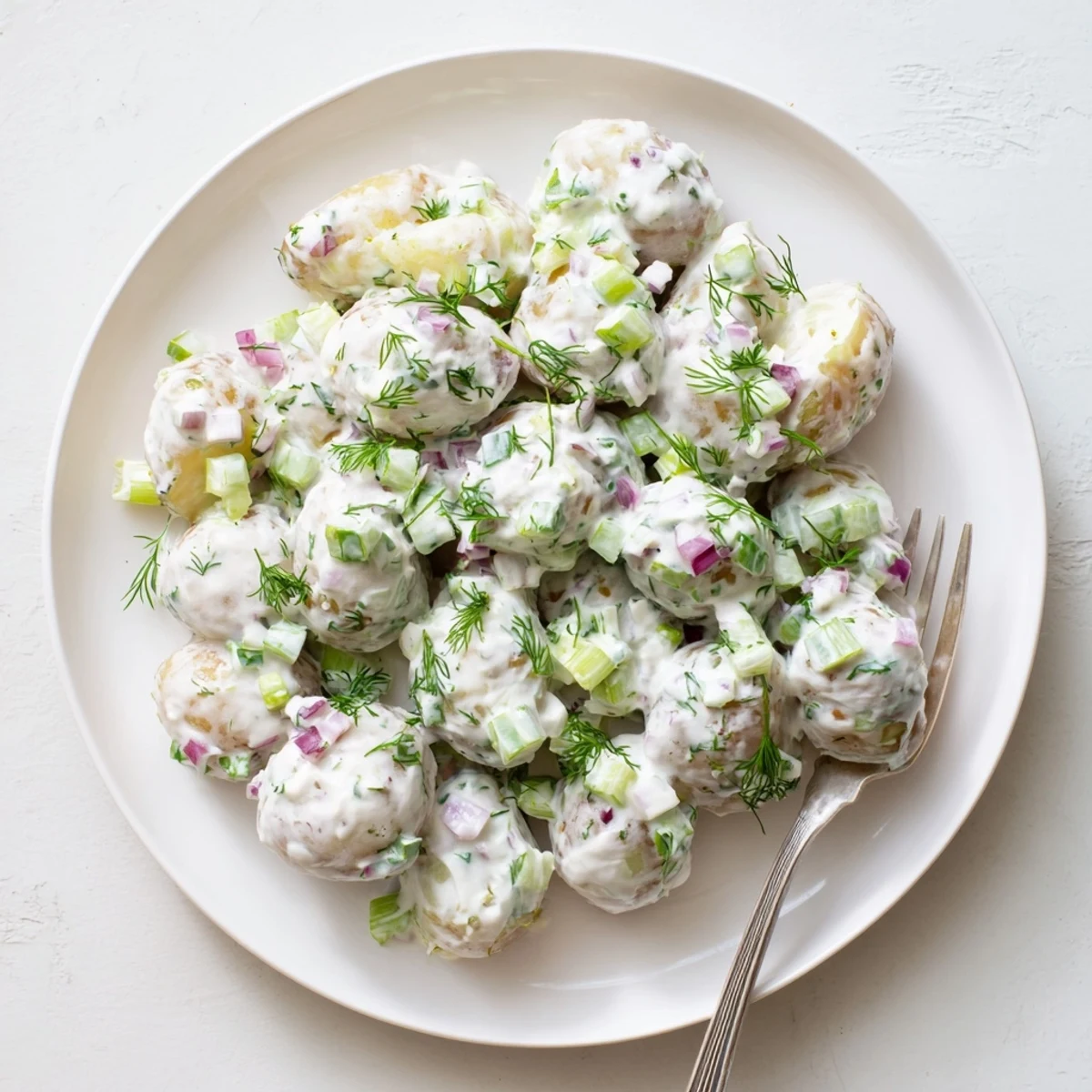 Once you have the basic method down, this potato salad becomes a canvas for whatever you love. I have added chopped hard-boiled eggs when I wanted extra protein and a more traditional feel, though the yogurt keeps it lighter. Sometimes I throw in diced cucumber for even more crunch, especially when my garden is overflowing with them in July. You could swap fresh chives for the dill if that is more your style, or add a handful of chopped fresh basil for something completely different.