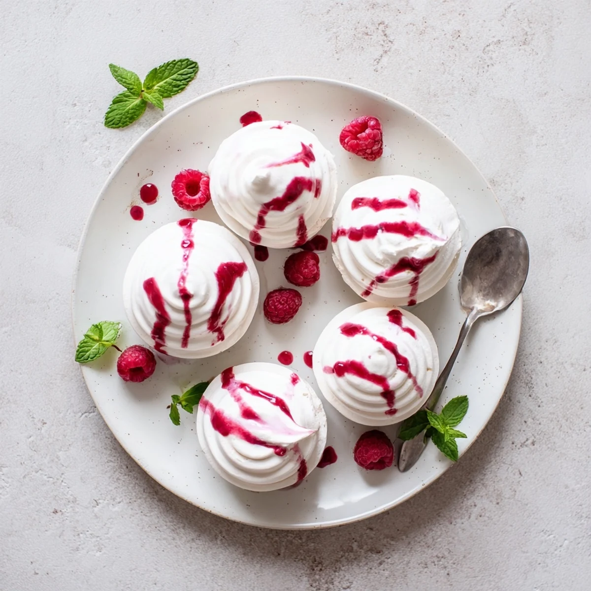 - Carefully hollow out a small cavity in the bottom of each cooled meringue, fill with whipped cream, and drizzle generously with that vibrant raspberry sauce.